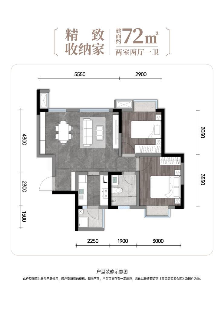 74㎡两室两厅户型,是轻享实用家的理想之选