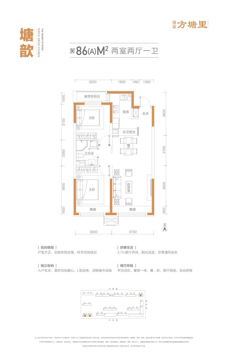 【建面约86㎡(A) 】小规模投资即入住南临河街!入户玄关设计,灵动收纳空间,LDK一体化设计,定制化飘窗空间,首置必备。