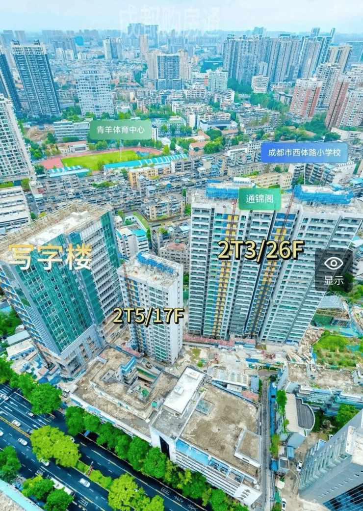 项目位于青羊区,一环内、新华大道(通锦桥路)边上、新城市广场商圈范围内。其周边一直没供应,也没有比较具有代表性的次新盘,所以在市场上基本没啥知名度,大家对它的板块区位可能比较陌生,我们就直接用学区来锁定范围——青二片区。