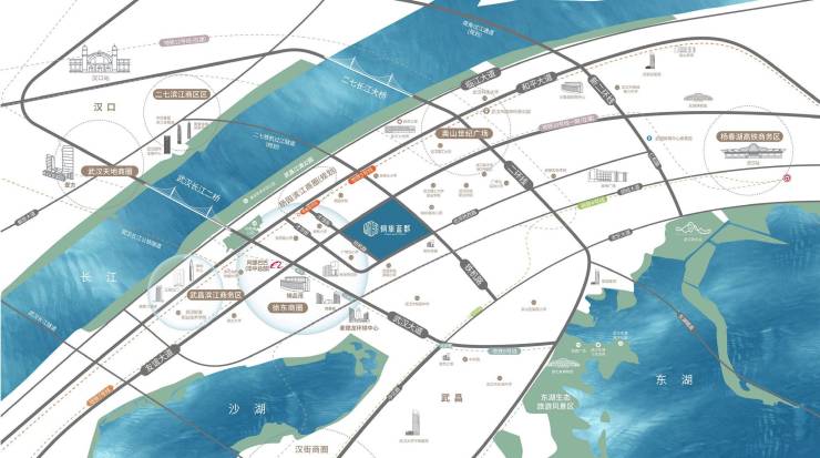 【交通】:三横三纵多轨道环绕,畅达全城三横:临江大道、和平大道、友谊大道三纵:武汉大道、铁机路、二环线多轨道:5号线(已通车)、8号线(已通车)、10号线(在建中)公交:约40余躺公交线路;畅达武汉三镇,与全城接轨繁华万象。通过临江大道、和平大道、友谊大道,15分钟可快速通达武汉武昌各大核心区域;二七桥,长江二桥,武汉公铁隧道,长江隧道主干道20分钟内可以到达汉口核心区域。
