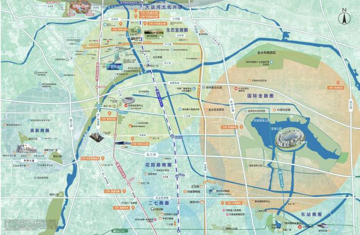 紧邻万亩生态圈(贾鲁河、东风渠、碧源月湖、古树苑)