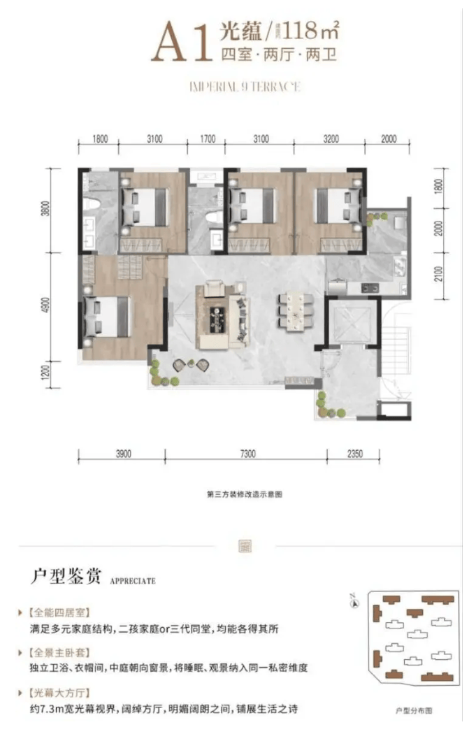 建面约118㎡平层