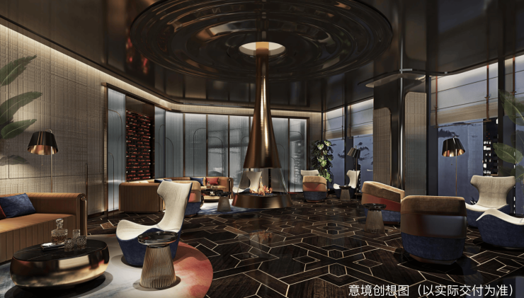 约7.7m两层挑空接待大厅,屋顶CLUB/共享会客厅/艺术酒吧/雪茄吧/咖啡厅/书吧