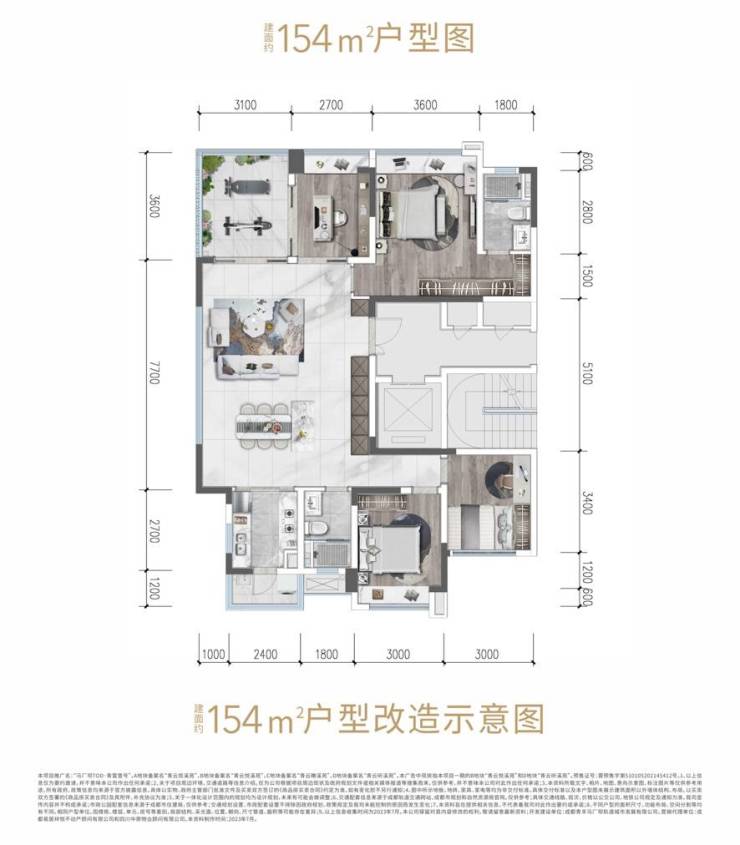 ?户型区间:约135㎡四房/155㎡四房