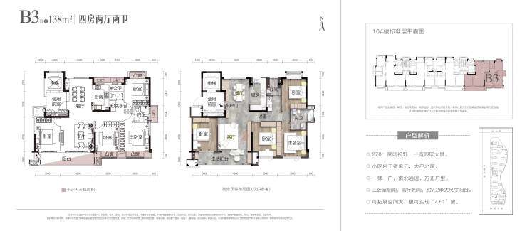 B3 138㎡三室两厅两卫【专梯专户 7.2米奢阔阳台 可实现4+1房】