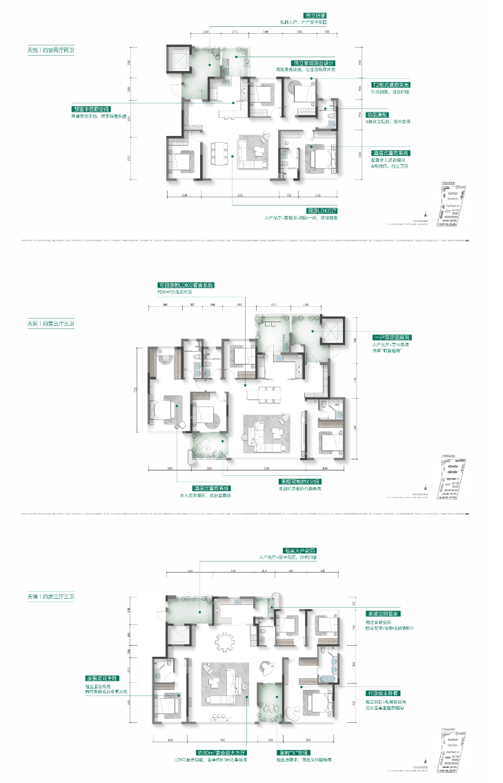 此系列户型定位为功能性与舒适性兼备的精品改善住宅。约117㎡ 户型可实现紧凑三房,满足新婚或三口之家;约139㎡ 户型则能提供更宽敞的四房空间。户型设计注重采光与通风,并尽可能优化客厅和主卧的观景面,让公园绿意渗透日常;约175㎡ 通常适合多代同堂的二孩家庭,在保障每位家庭成员独立空间的同时,也能提供宽敞的公共活动区域,是追求一步到位改善的家庭之上选。