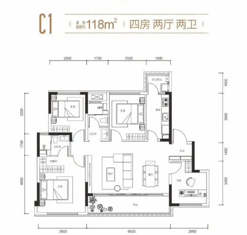 建面约118㎡ 舒适性四房双卫
