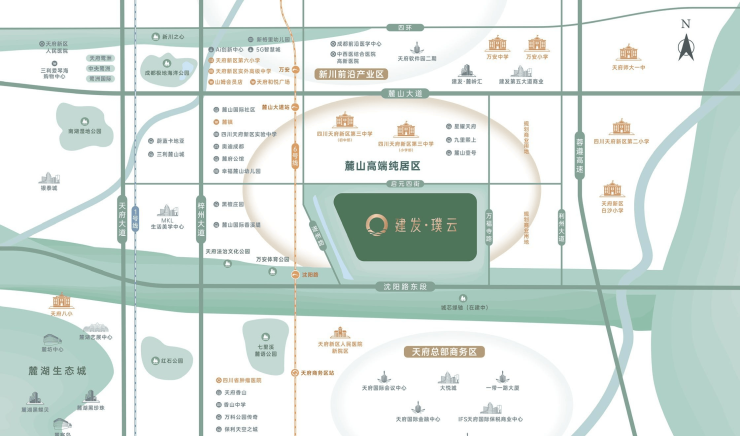 作为天府新区北部门户,项目所在麓山板块是成都公认的高端居住区。占据"高新-天府"发展走廊关键节点,既可承接新川科技园产业外溢,又能共享天府总部商务区发展红利,具有显著的区域增值潜力。