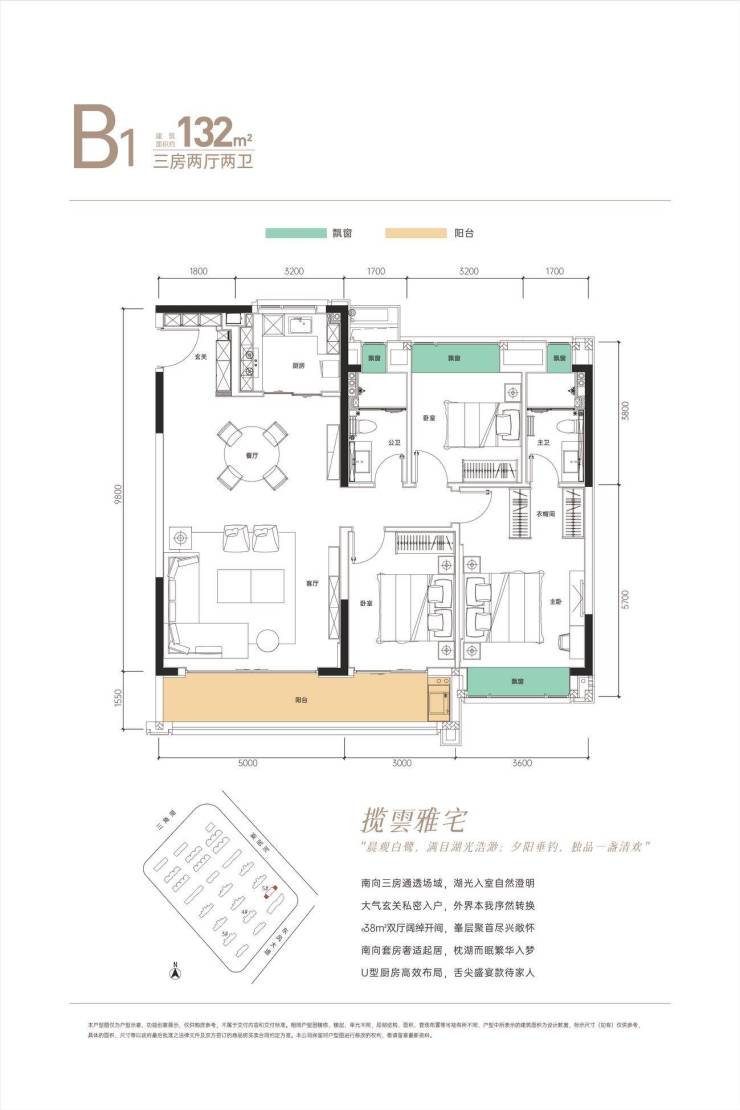 揽雲雅宅|建面约132m²三房两厅两卫