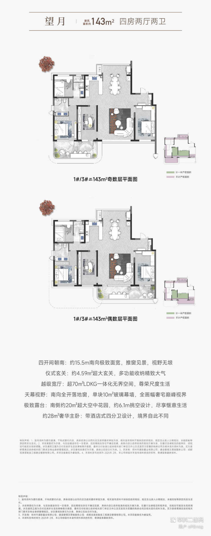综合得房率:129㎡105%,143㎡115-120%