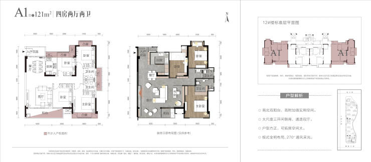 A1 120㎡四室两厅两卫【南北双阳台 高拓展空间 奢享大四房】