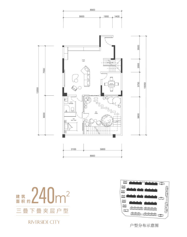 此系列平层产品定位为城市精英的品质进阶之选。户型设计强调空间的通透感与现代感,通过大面宽落地窗最大化引入江景与城市风光。129-159平方米的尺度兼顾了功能性与舒适度,适合追求核心地段、优越景观与高效生活的精英客群。