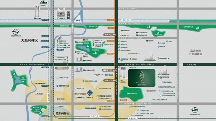 以高新区金融城与大源为支点,聚合万亿级产业势能+城市醇熟生活圈