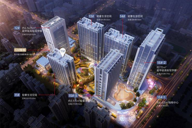 12栋交通勘察设计院总部企业基地,15栋四川蜀道集团总部,办公人群聚集,商业人气必备条件