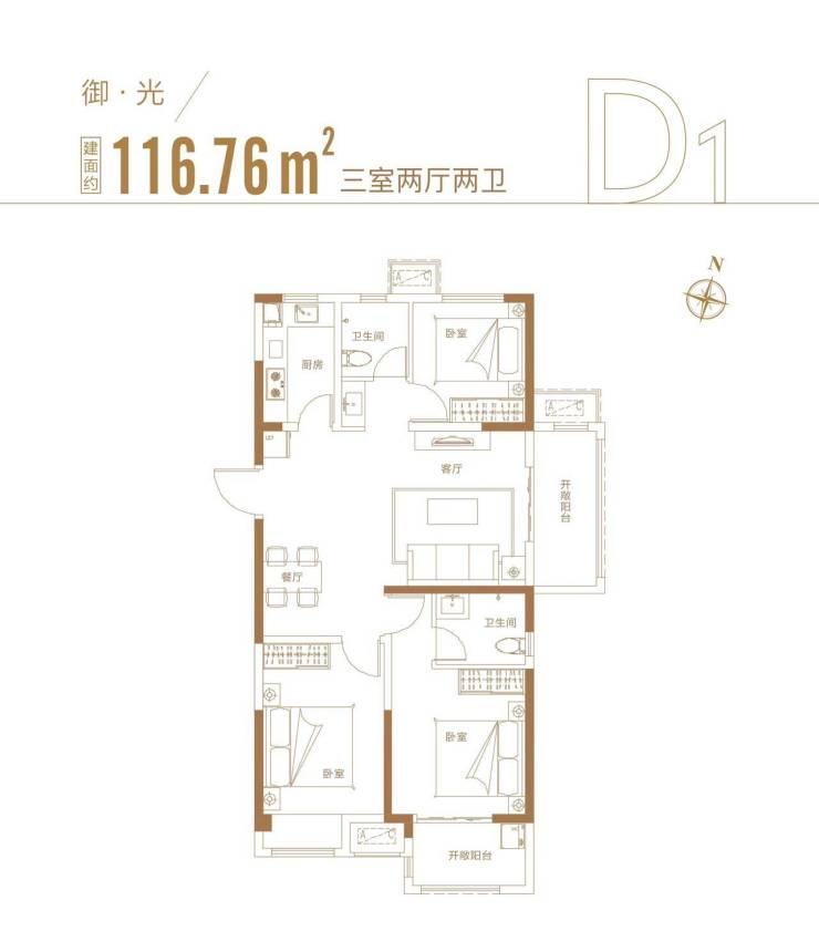 产品:建筑面积约70-117㎡ 两房/三房