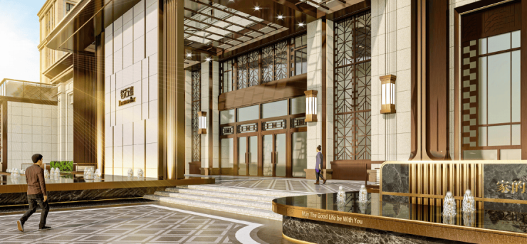 超宽黑金系水景展示面530米超长归家礼序双轴线