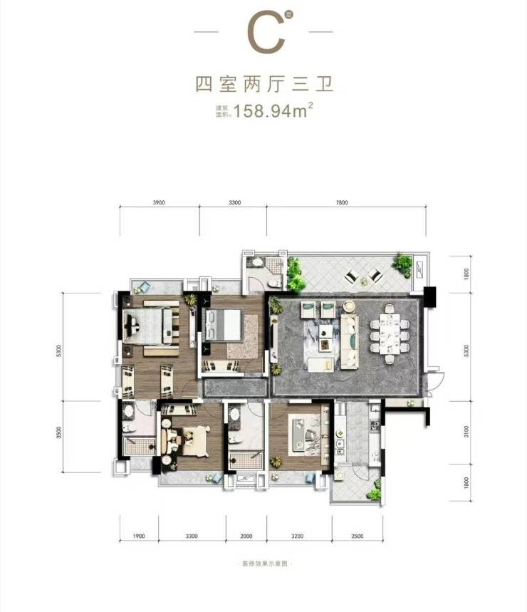 户型面积185㎡左右套四三卫,3.3米奢阔层高,定义居住新高度。双玄关入户门,户户独享约12㎡阔气公区电梯前厅,双L形阳台更实用