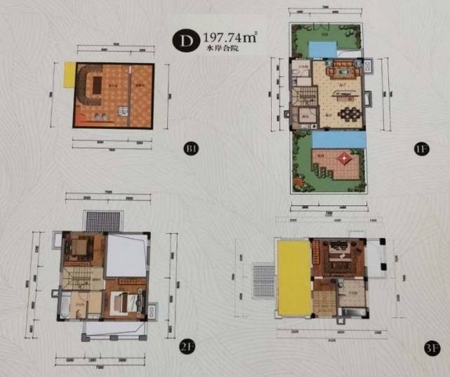 建面:137平,四联排,地面三层卖点:户户临河观山