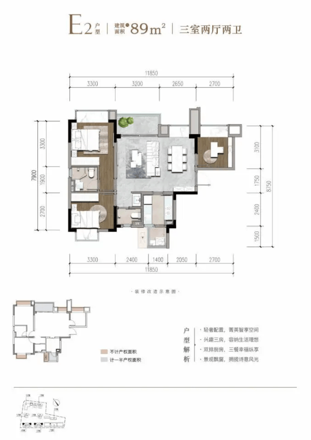 建面约89㎡三房两卫 (刚需优选)