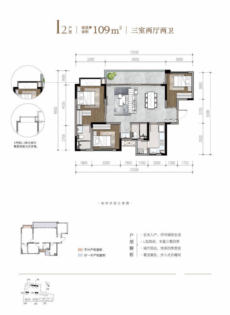 2. 104-109㎡三房两卫(舒适升级)