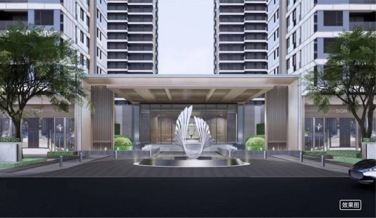 以星涡之形为大门主景,结合酒店式落客区、入口景墙、迎宾水景、特色树阵,营造归家仪式感。