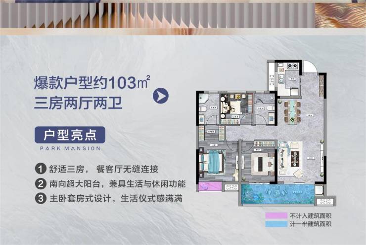 【103㎡爆款三房——南向约6.6米超大阳台 套房式主卧】