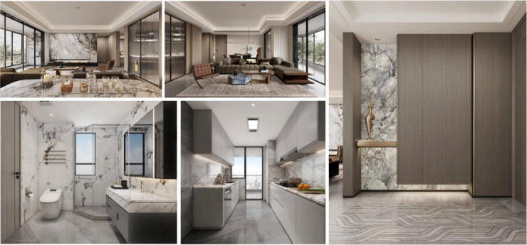 厨房操作空间升级使用岩板为背景、配置凉霸,烹饪更舒适;洗脸柜通透到顶、浴室壁龛收纳等,以同频世界的审美力,成为创造美好生活的原动力