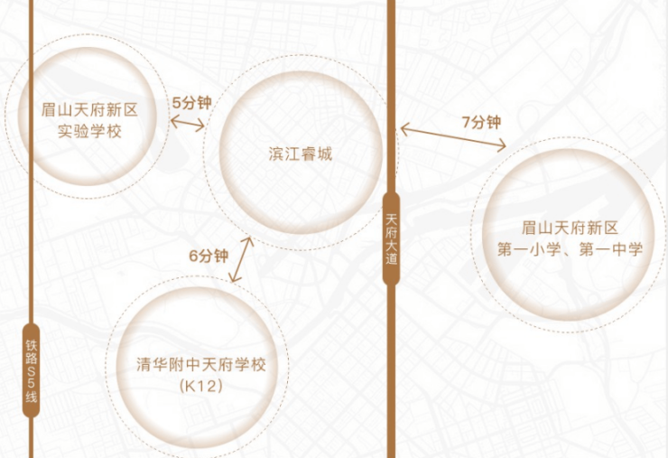 15年优质教育链:- 基础教育:配建天府四幼,毗邻视高小学/中学- 重点学府:清华附中天府学校(小初部已开学,高中部2024年启用)- 高等教育:四川科技职业技术学院等院校环伺