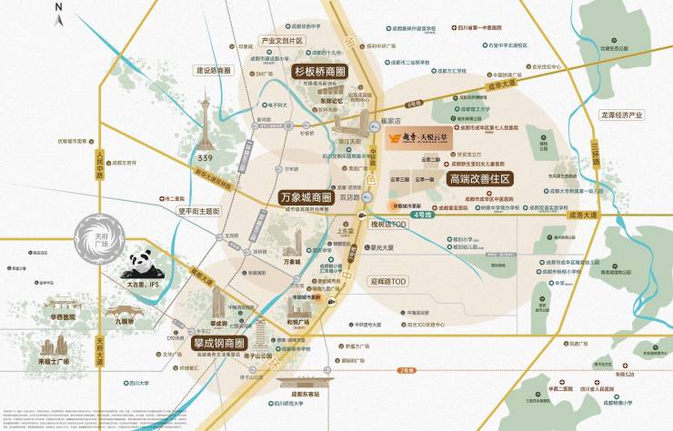 核心商圈:锁定成都商业 TOP3 的万象城商圈,步行可达杉板桥、东郊记忆等非标商业典范,潮流购物、文艺打卡一站式满足;