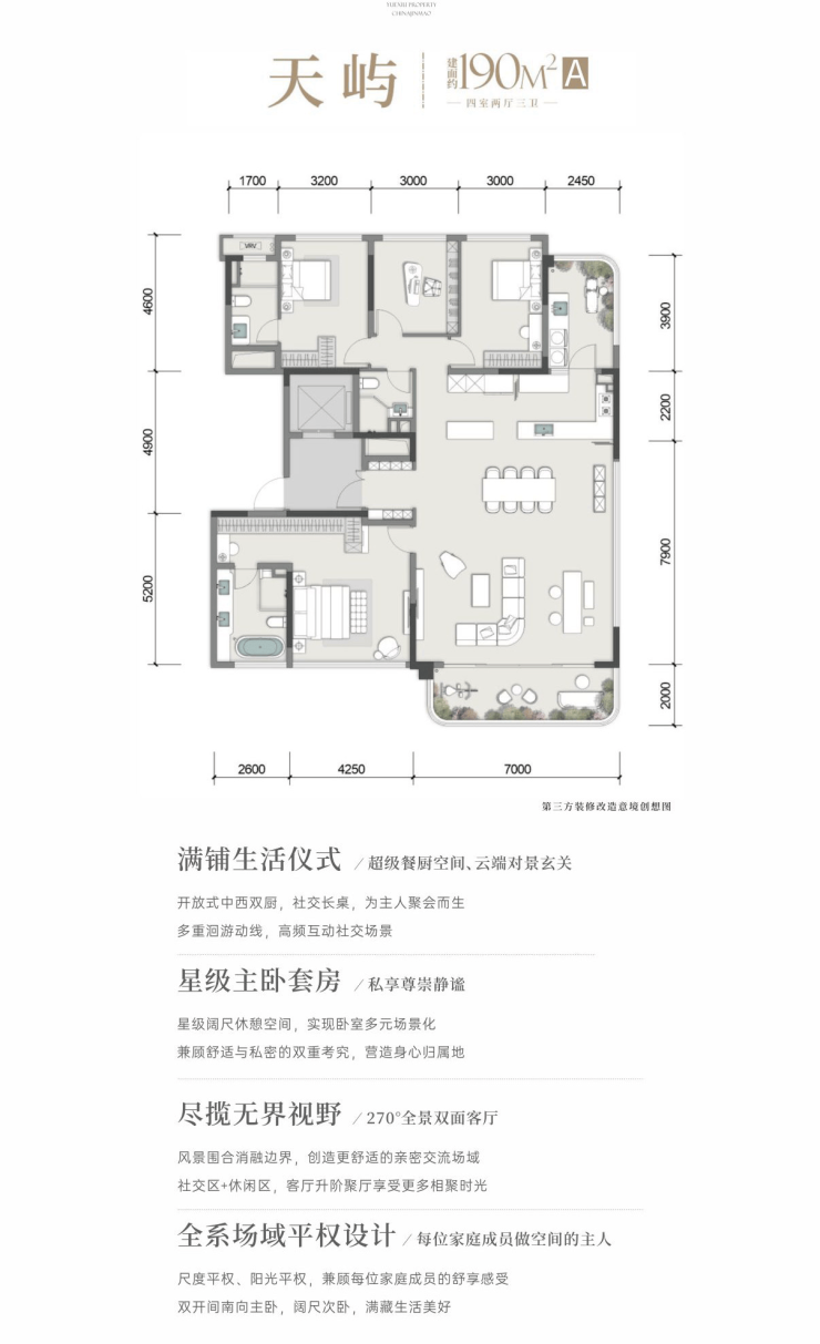 臻选户型:143㎡漫屿(四房两厅双卫)/190㎡天屿&鹭屿(四房两厅三卫)