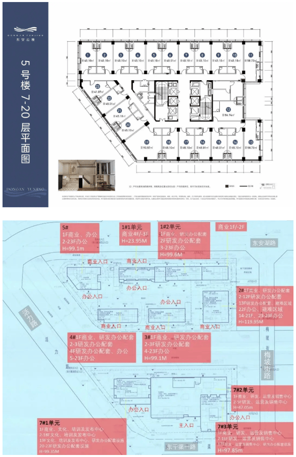东安云境商业中心是雄踞成都龙泉驿区东安湖CAZ(中央活力区) 核心的商业地产项目。项目位于画湖路333号,主力产品为总高23层、4.2米层高的清水LOFT公寓,面积区间为41-90㎡(主力约45㎡),梯户比为6梯23户,可售房源322户。