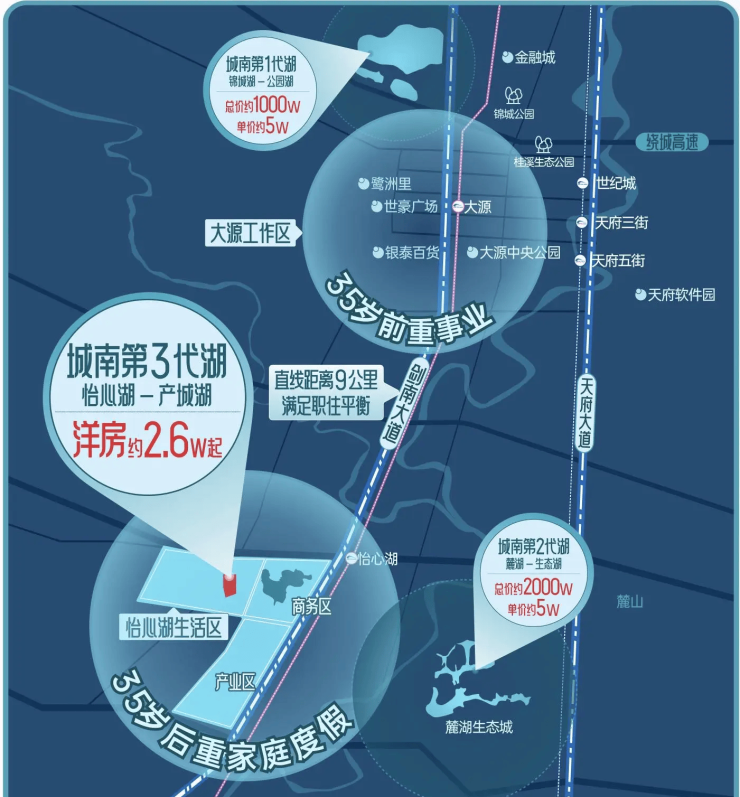 产业发展:怡心湖拥有千亿产业投资,有清华同方,浪潮,电子科大科技园等入驻,高产业造就强未来。
