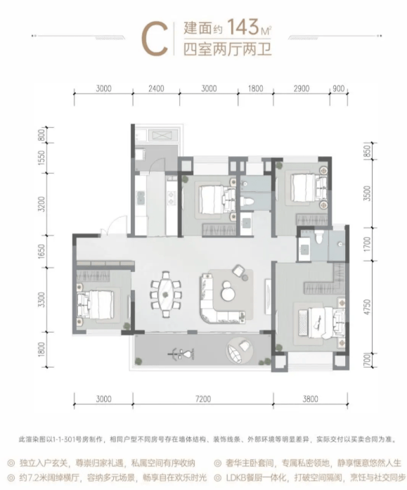 项目当前主推建面约115-143㎡的户型,均为纯板式结构,设计以高实用性、宽景视野和人性化细节为核心,全面满足二胎家庭、三代同堂等主流改善家庭的居住需求。
