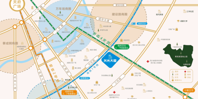 战略区位优势:项目地处东中环内侧槐树店,是成都“东进”与“成渝相向发展”战略的重要联结点,占位城市发展主轴,享受长期规划红利。