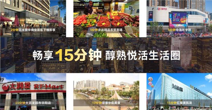 下楼即享20000㎡自建社区商街,步行即达大型农贸市场,周边中海环宇坊(盒马鲜生)、大润发华阳店、红星美凯龙及华阳老城区繁华,醇熟近享。