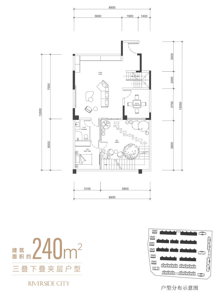 面积段:建面约174-325㎡江岸雅奢墅境 建面约129-159㎡天际阔景平层