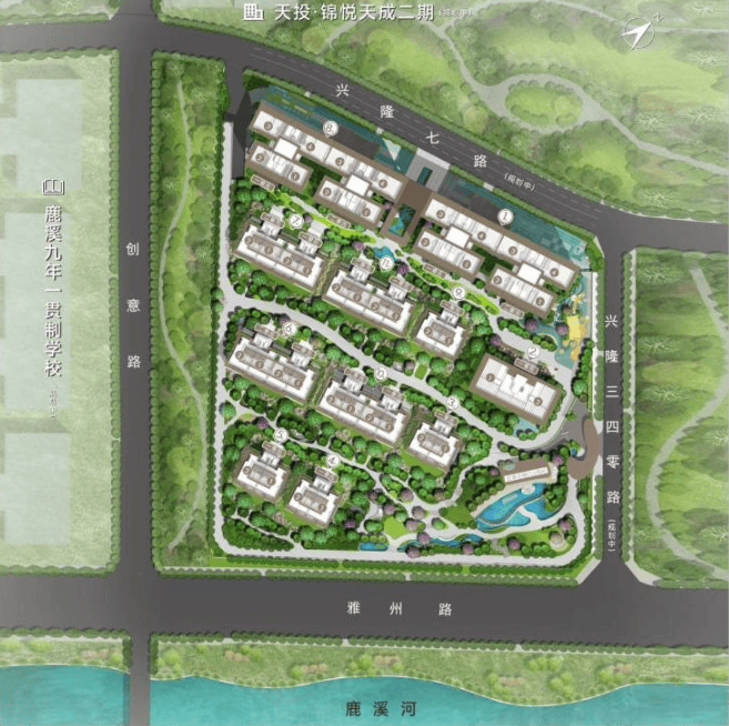 超级生态环绕:项目身处约3800亩的鹿溪河生态公园之中,门前即见鹿溪河,短程车程内便可抵达占地约4500亩的兴隆湖超级生态区,实现真正的“公园即家园”。