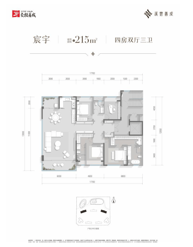 此户型为项目的巅峰之作,拥有约215平方米的恢宏尺度。其最大亮点在于创新的端厅设计,带来了极佳的采光、通风与开阔的景观视野。功能分区清晰且尺度奢侈,可轻松规划出独立的家庭厅、多功能室等,完美适配追求终极空间体验、注重圈层社交与家族团聚的塔尖客群。