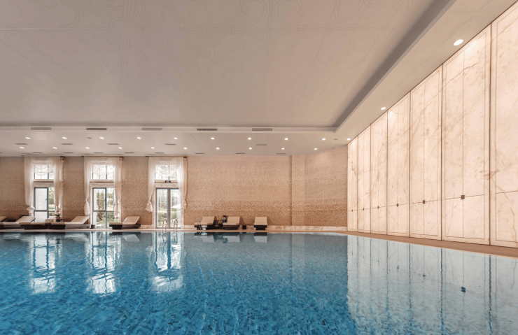 超千平恒温泳池高端别墅区私属接待,标准泳道设置,270°环幕泳池,24小时德国进口循环净水系统,恒温净水畅游中坐拥全景自然。