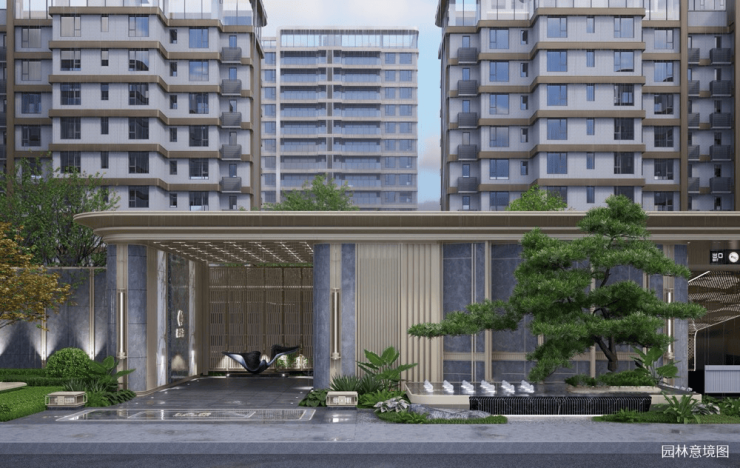 采用"一轴四进六园"布局,打造万方中央景观区,四重归家礼序