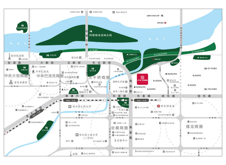 9:二环城芯:占据二环核心板块,交通便捷,畅达哈尔滨5大生活主流圈,滨北工铁桥与化工路形成闭合,地理位置优势尤为显著,二环到三环寸土寸金,土地资源不可复制