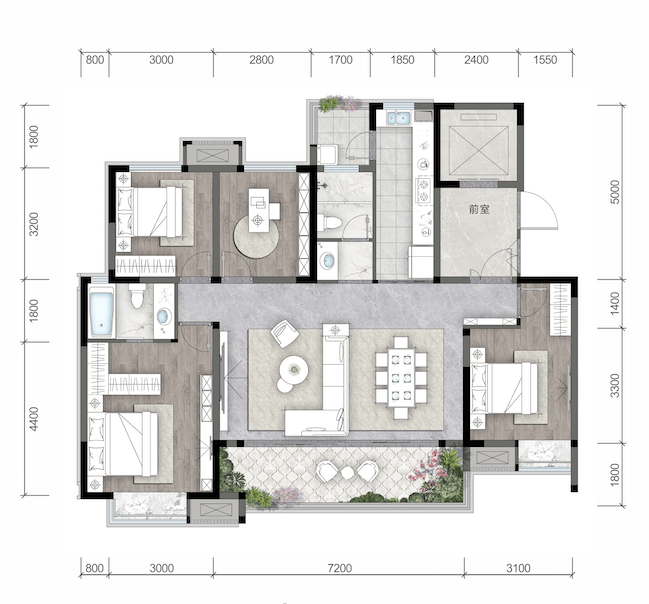 独梯入户+约7.2米景观阳台,大横厅可灵活改造为亲子区或书房。