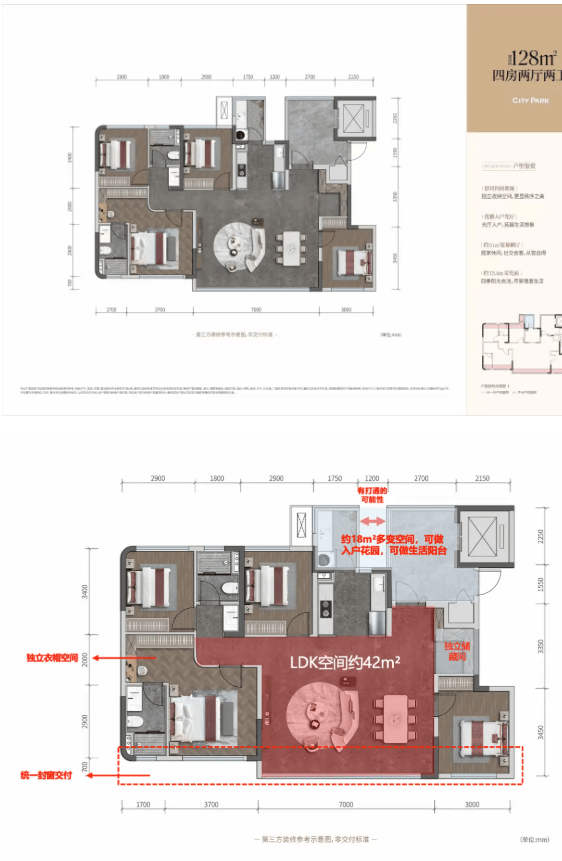 04 主力户型解析—— 128-188㎡全能四房,以奢阔尺度承载家族生活与社交