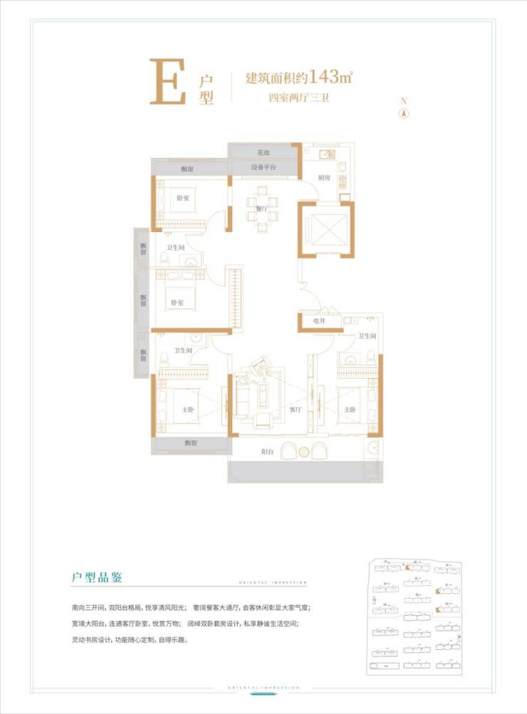 【品质户型】:105-143㎡ 阔境高层 158-258㎡墅质洋房