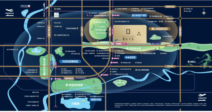 铂悦华庭(麓山天筑)坐落于天府新区中央法务区-天府前湾区核心位置,门口地铁6号线沈阳路站,北接金融城、新川科技园、天府国际基金小镇;南临中央法务区、中央商务区、兴隆湖科学城,成就成都第一阵营豪宅板块——麓山高端富人区,为百万高精尖人才打造的舒适居住区。