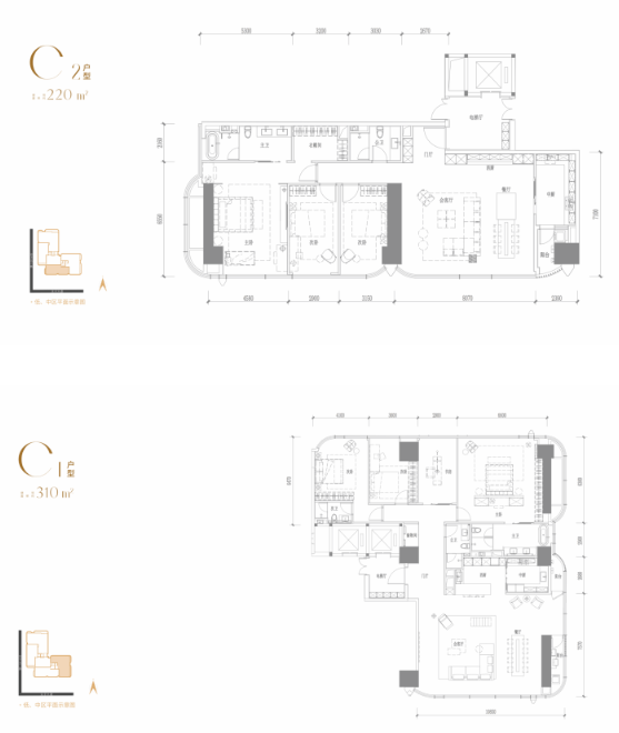 的云端大平层,以清水状态交付,为顶级客群预留充分的个性化定制空间。所有户型均以最大化城市景观视野为核心,以宏大尺度承载塔尖家族的居住、社交与收藏梦想。