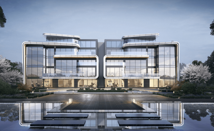 4. 游艇级建筑立面:40%超高窗墙比搭配弧形铝板,以超行业标准的选材呈现标志性建筑美学。