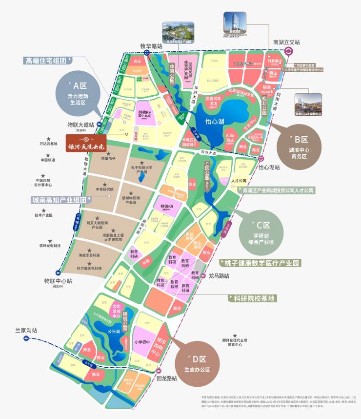 产城湖“3.0”样本:作为继锦城湖、兴隆湖之后,成都重点打造的“产城湖3.0”模式⽰范区,定位为“世界⼀流的“环湖公园科技城”和“城南品质⽣活新地标”。经过10年发展,怡⼼湖已经完成从“⽣态湖区”到“繁华城区”,再到“湖居⽣活⼤城”的阶段跃迁——以实实在在的⽣态、产业、教育、商业价值,构筑起成都⾼端宜居⽣活的新标杆。