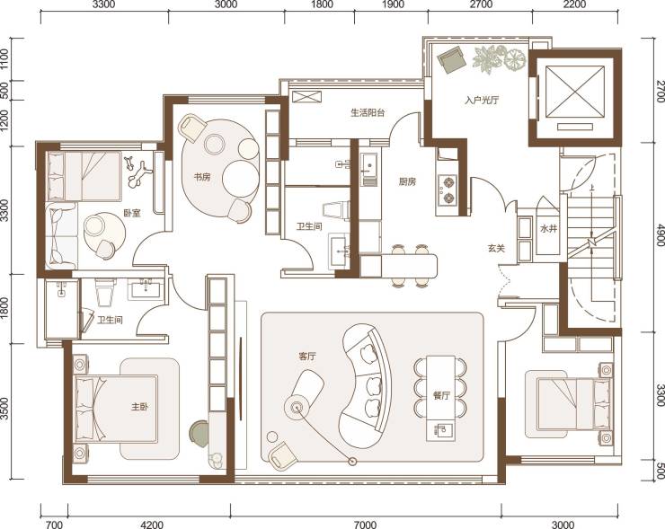 【无界聚场】约42㎡客餐厨阳台一体化通厅,视野无遮