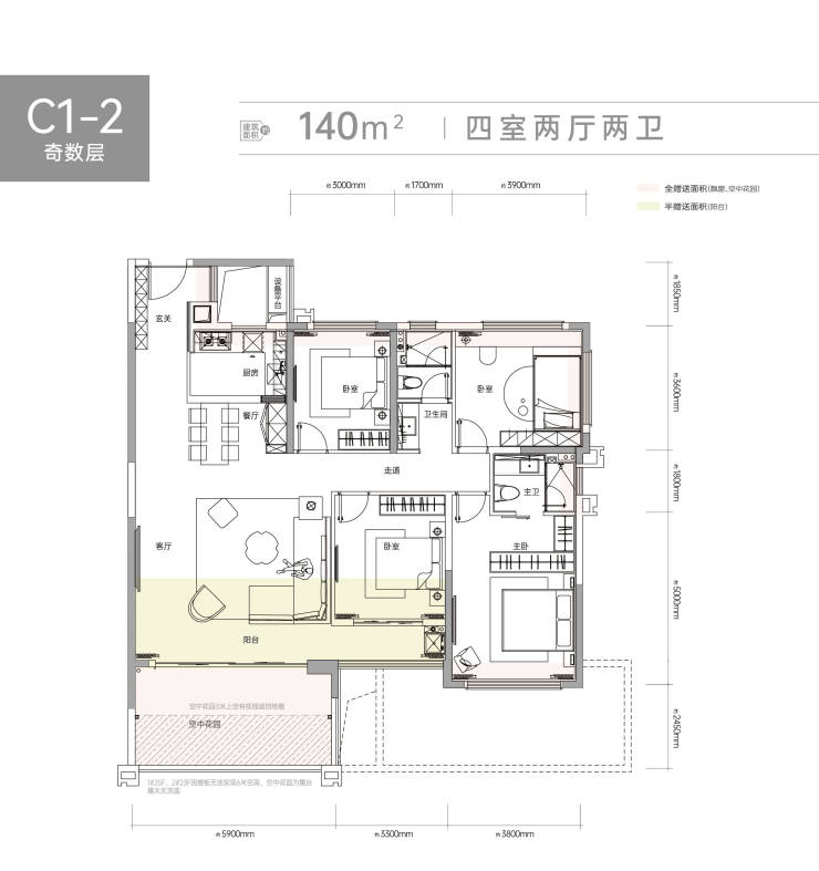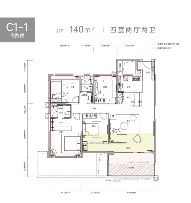 首开楼栋得房率高达127-132%,约16-20㎡空中花园全赠送!